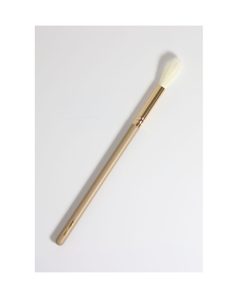 Naturalne włosie i drewniany trzonek tworzą duet, który łączy klasykę z nowoczesnym luksusem. Całość dopełnia lakier w kolorze nude i złota skuwka, które razem z białym włosiem tworzą wyjątkowo elegancki, kobiecy design.